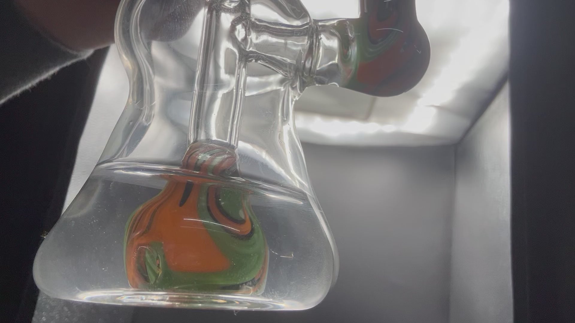 This was a custom line tube pull I did with lava, jet black, and Forrest green. 10mm 90° fully worked joint. Perc is fully sealed to the bottom as well for added stability.