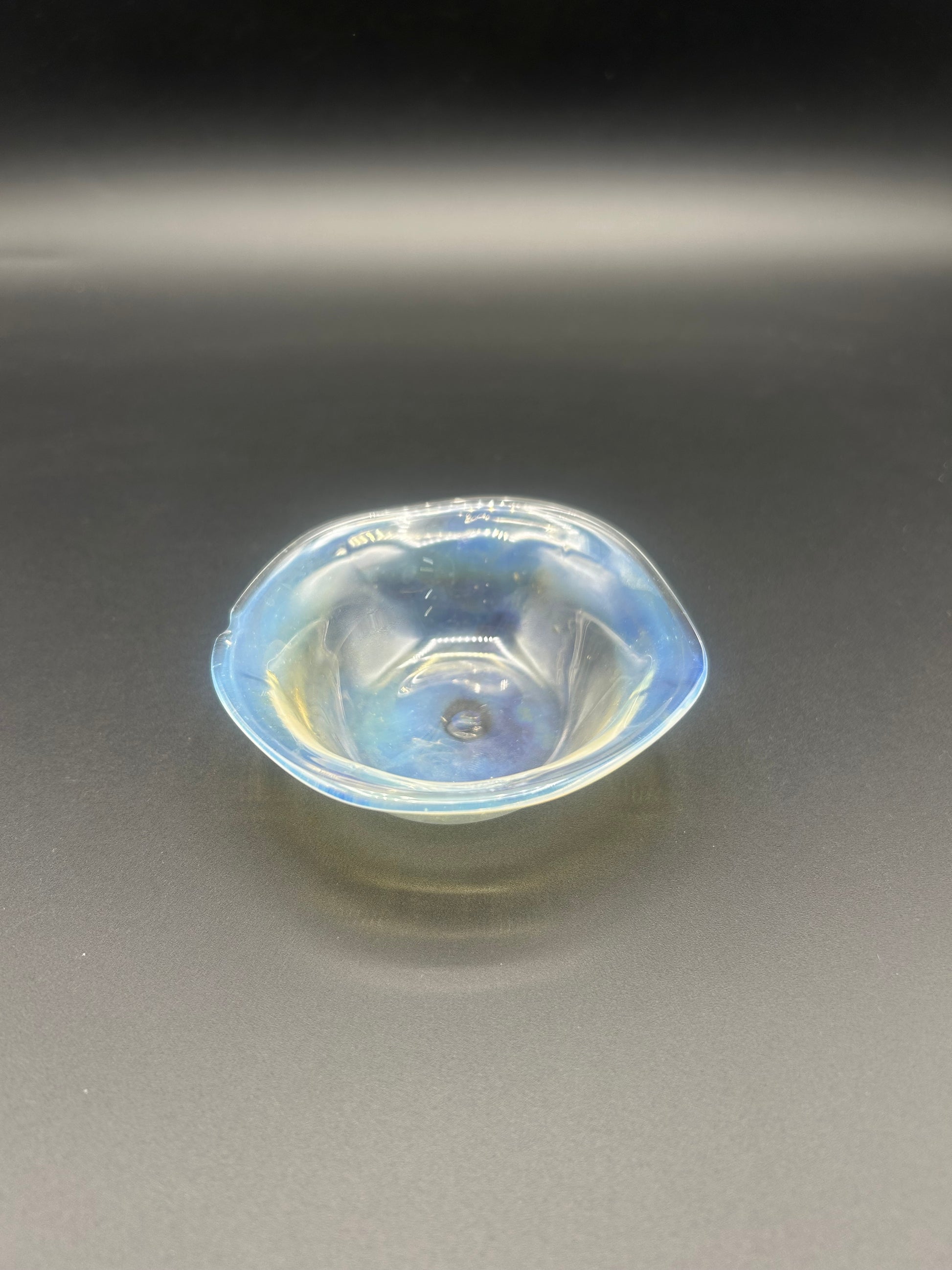 Clear Borosilicate class 32mmX4mm and .99% fine silver fumed over the glass to give it that blue hue